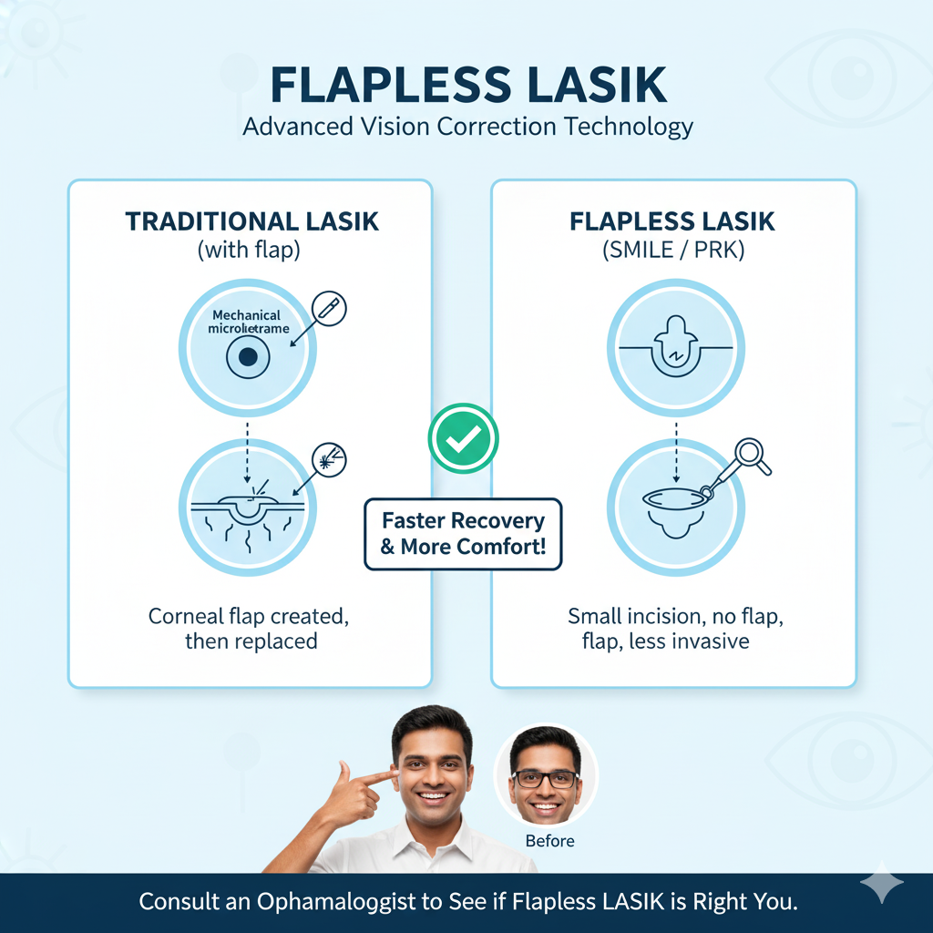 Modern laser vision correction technologies like SMILE PRO, LASIK, and ICL make it possible to permanently correct eye power and achieve clear vision without glasses or lenses.